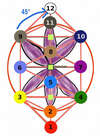 - des pétales en cercle à la base des pods (1 pétale par dimension soit 12 pétales),